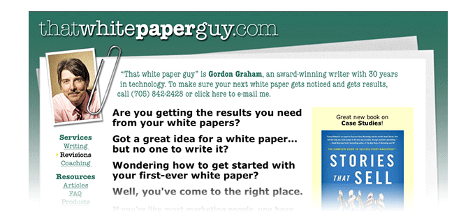 Client: That White Paper Guy Software: Adobe DreamWeaver, Photoshop & Illustrator My contribution: Design, HTML, CSS Date: March 2009 -